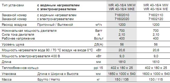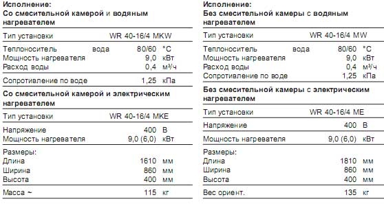 Если вентиляционная установка должна также выполнять функцию отопления помещения, имеется исполнение со смесительной камерой для работы в режимах притока, вытяжки и рециркуляции ( Тип установки WR 40-16/4 MKW, или WR 40-16/4 MKE).